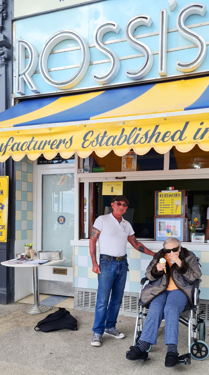 Once the trio had arrived at Weymouth the first stop was to Rossi’s Ices on the esplanade, there Ruby enjoyed an ice cream on the house, having regaled the owner that she remembered when the business first came to Weymouth in 1937 and even knew his Grandfather.